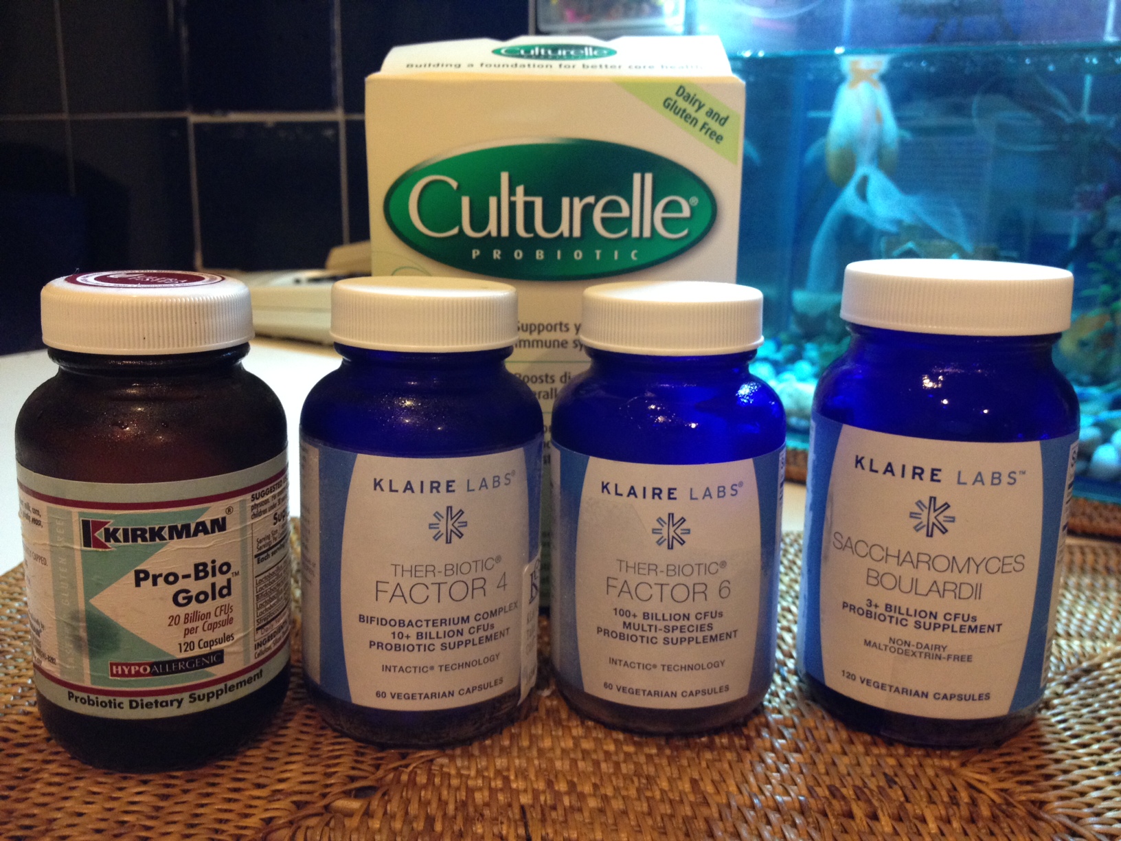 So which probiotics do I like? As you know, I do like to rotate my probiotics once I finish a jar or two. Some of my favourite brands of casein-free probiotics are from Klaire Labs, Kirkman’s and Custom Probiotics. When choosing probiotics, I prefer a broad-spectrum high CFU (colony forming units) such as Klaire Labs Factor 6 and Custom Probiotics CP-1. Previously, I used Kirkman’s ProBio Gold and Klaire Labs Therbiotic Complete. I no longer use them due to the strep-strains, plus the 25 Billion CFU is too low for my taste now that my children require higher amounts. Though recently I bought Kirkman’s ProBio Gold just to tide us over before my stock of Klaire Labs comes in. I’m taking it for myself now. I have also used Klaire Labs Therbiotic Detox, it is strep-free and is higher CFU, however my children don’t do so well on it. Perhaps the lack of certain strains, as it is not broad-spectrum. Occasionally, I still use Klaire Labs Factor 4 as an add-on. It contains Bifido strains which helps with constipation. Though for my next rotation, I would like to try Custom Probiotics Blend of 6 Strains or D-Lactate Free because of it’s awesomely high CFU. Other high CFU formulations includes VSL.