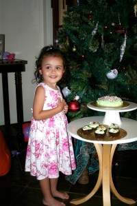 We baked christmas cookies and cakes recently. Maya said “Mummy, what are you cooking? You’re a good chef Mummy. I am a waiter!” She loves helping me in the kitchen. She helps to stir the batter, brush margerine on the cake tins, places the muffin paper cups into the tin, spoons the batter into the cups. Then she gets to decorate them anyway she likes. There’s lots of rainbow sprinkles, silver balls, sugar flowers and chocolate buttons.
