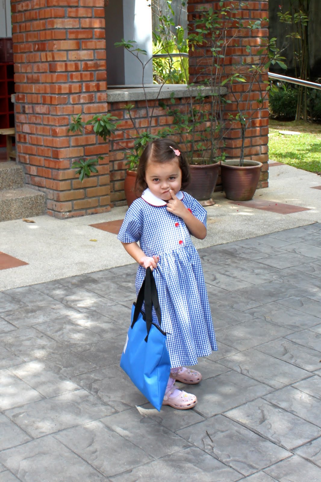 Today, we extended the school time to 2 hours. It was her first time with a new subject, Mandarin. The school has a multi-lingual curriculum, English is the primary language however there is a Mandarin class every day. There are always 2 teachers in the class, one who speaks and teaches in English and another teacher who only speaks in Mandarin. However, for students whose parents do not wish to emphasize on Mandarin language skills, the school has a more relaxed policy for those kids.